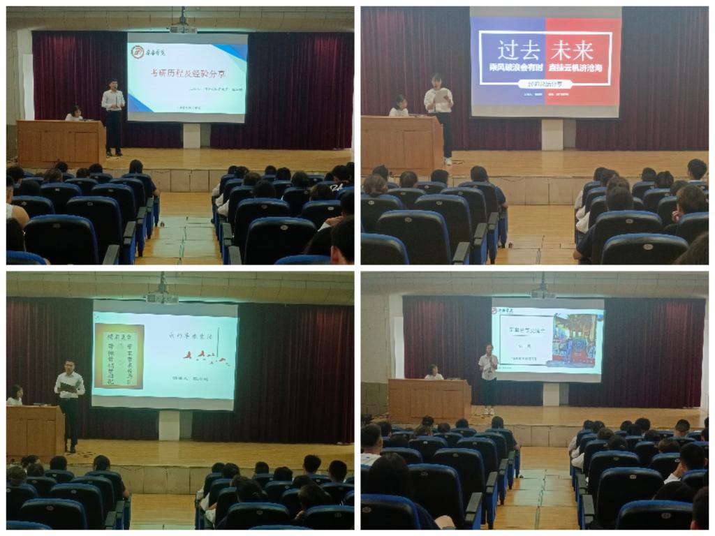 人人看人人摸省级优秀毕业生张彩霞、考研学生代表薛鹏、国家奖学金获得者张一凡、退伍大学生代表陈志刚,依次进行了经验分享。