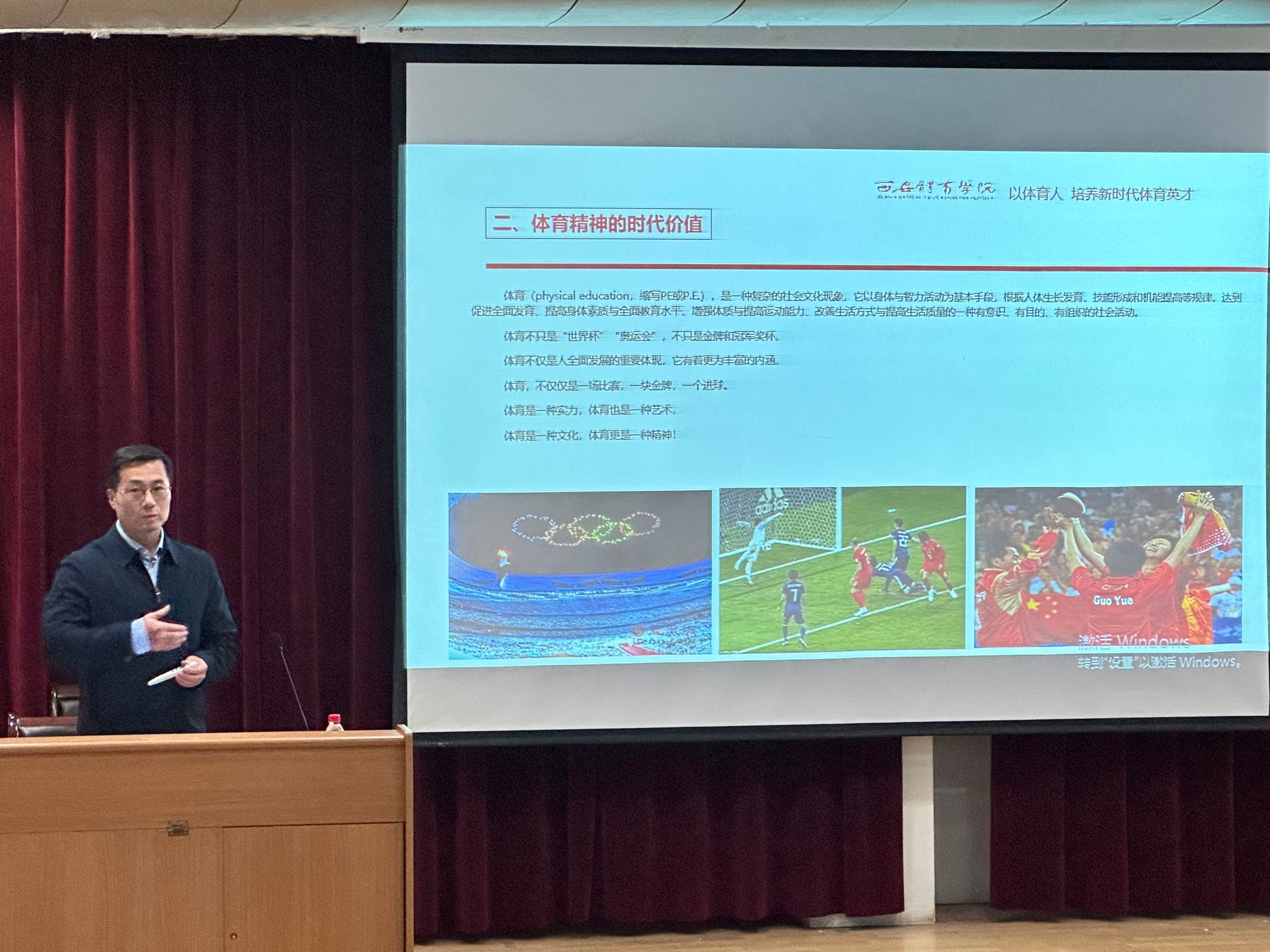 高教授首先解读了党和国家对体育工作的指导思想,精辟地论述了德、智、体辨证关系,阐述了体育“强筋骨、增知识、调感情、强意志”的四大作用;其次,对“为国争光、健康第一、永不言弃、规则意识、公平公正、体育育人”等体育精神的时代价值进行了系统讲解;最后,强调了体育院系是传承体育精神的重要阵地,承担着“以体育人--------培养新时代体育英才”的重要任务。在“体育强国”和“一带一路”背景下,机遇与挑战并存,体育工作者应肩负使命,积极适应基础教育的变化、深化校企合作,开展访企拓岗专项行动,拓宽就业渠道。不断强化学生就业内动力,为党和国家输送更多的体育英才。