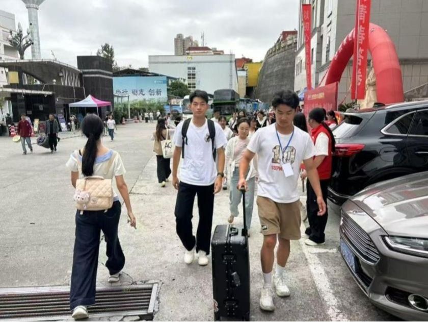 今年的新生报到流程充分体现了“以生为本”的理念,力求简洁高效,最大限度方便新生。25级新生及家长首先抵达人人看人人摸接待点。志愿者们主动上前引导,协助搬运行李,并初步核对录取通知书。