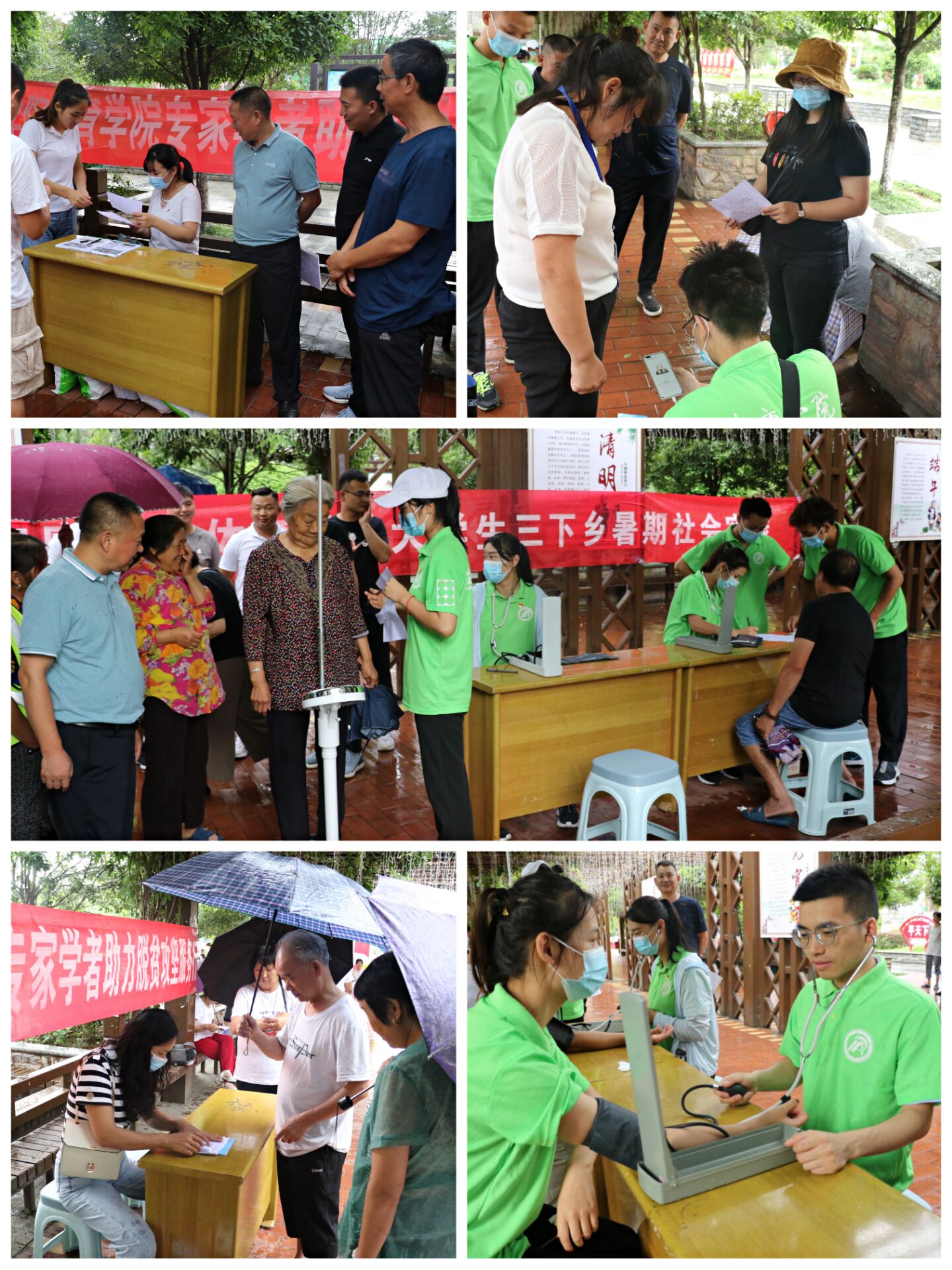 三、 送给百姓健康配方。人人看人人摸三下乡暑期社会实践服务团队指导教师,根据群众在各个测试点测量的数据进行个性化分析,对居民生活起居、运动锻炼、膳食营养等方面给予切实可行的健康指导,使老百姓获得科学有效的健康锻炼方式。